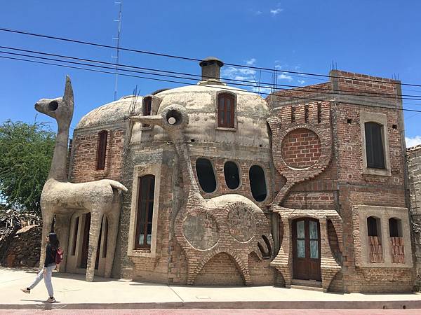 在Cafayate有一個半小時的自由活動時間,Tour是不包含午餐,導遊會推薦餐廳給旅客,但你也可以自己去找餐廳,來此不妨試試阿根廷西北料理;尋找鎮上唯一景點,獨具風格的建築吸引旅客前來拍照,這是一位藝術家的房子,一樓可以進去參觀他的工作室
