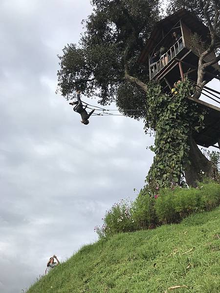 園區總共有四個鞦韆,不過只有樹屋這兩個鞦韆人最多,拍出來的照片最漂亮,有工作人員在時會幫忙推鞦韆,他是用身體的力量在推,所以鞦韆整個飛超高,為了增加刺激感會指導你把手方開、躺下或幫你旋轉方向