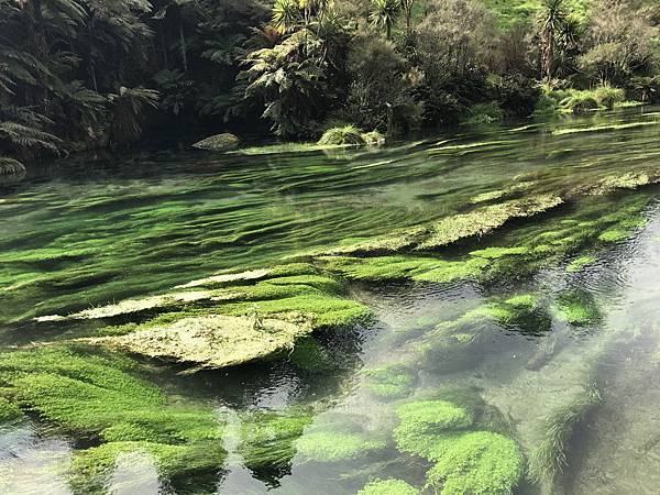 在紐西蘭北島中,是我覺得必去的景點之一,整條河川裡佈滿巨型綠色水草,隨波漂流在清澈的水質中又更顯奇特景觀,這裡的泉水純淨自然,紐西蘭的瓶裝水有70%來自這裡