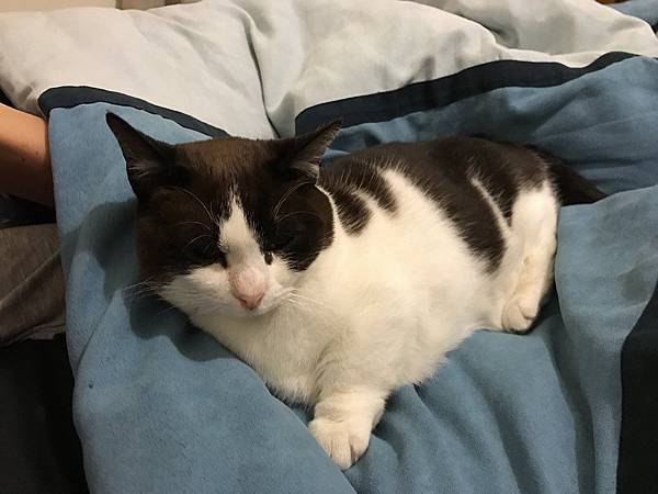 她家的貓有著可愛的小短腿,如果牠想進房間會不停抓門,我們讓牠進來後,一整個晚上都睡在我們的床上,完全不怕陌生人