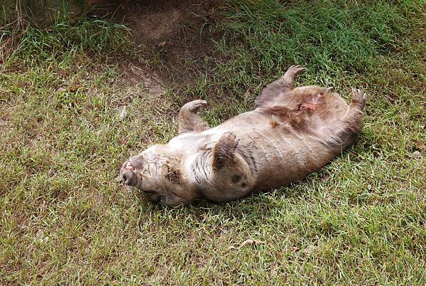 睡到翻過去的Wombat袋熊,澳洲的有袋類草食性動物非常溫和,身長約有1米,生活於澳洲東南部及塔斯馬尼亞州的森林、山地及石楠地,袋熊會以其類似齧齒目動物的牙齒及強壯的爪來挖巢穴