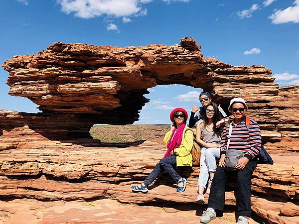 這紅褐色的天然拱門岩石,經過長時間風化後中央呈現一個空洞,透過中間往外看可以欣賞整個峽谷的全景和墨奇森河Murchisonr River的景色,而這天然形成的岩石如同一扇窗口,因此有了Nature’s Window的名號