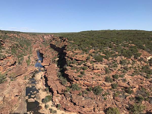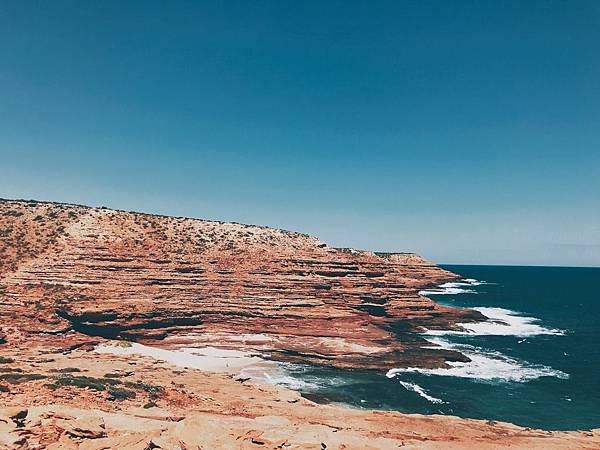 從Georaage一直到Kalbarri沿途的海岸線景點,包括紅崖Red Bluff、波特艾利峽谷Pot Alley、藍洞Blue Holes、老鷹峽谷Eagle Gorge、Wittecarra Creek、最為壯觀的島石和自然橋Island Rock & Natural Bridge、香菇岩 Mushroom,上述景點很集中,開車3~5分鐘就會到達,老實說這些地方有點像我們的東海岸