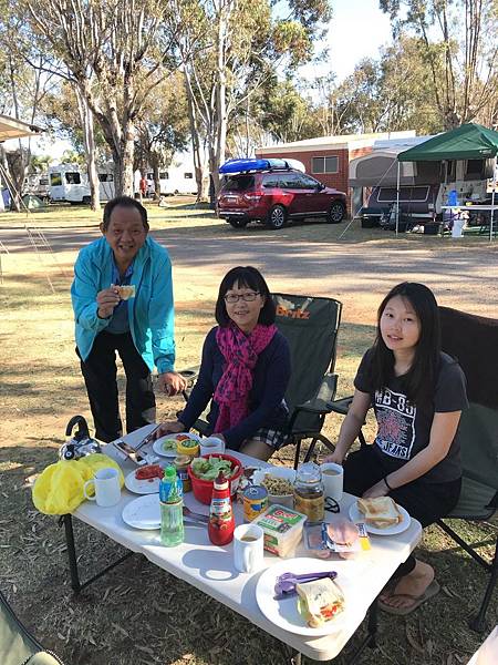 越往北的公路上只有越來越荒涼,筆直的道路像是沒有盡頭,有時候開好久才有一台車經過,荒涼的郊區營地也相當簡陋,沒有廚房也沒有水可以加滿露營車的水槽缸,吃飯只能在車上解決,爸媽一路上配合度都很高,還勞駕爸爸一起分擔開露營車,真是辛苦他了