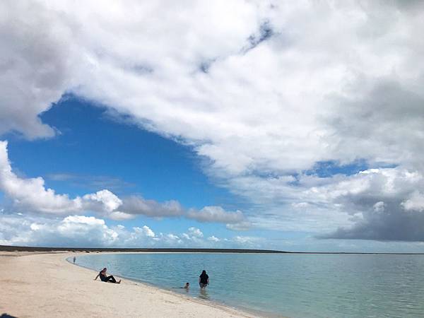 藍天白雲加上沙灘滿滿的潔白貝殼,美得令人屏息,赤腳走在貝殼沙灘完全不會刺腳,更可以下水游泳消暑
