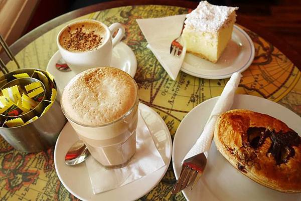 香草蛋糕由兩片酥脆的千層派皮,夾著香草口味的卡士達醬,我個人覺得蠻甜的,建議兩人一起吃比較不會膩;干貝派我覺得超好吃,幾乎每一口都吃的到干貝夾在派裡面,而且塔斯的海鮮以新鮮便宜聞名,澳洲的干貝派似乎就是從塔斯發明出來的