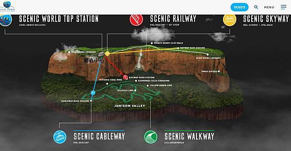 首先從遊客中搭乘Railway火車,它的前身是礦車,坡度非常陡斜,有像是在坐雲霄飛車的感覺,蠻刺激的建議一定要體驗看看;到達Walkway步道