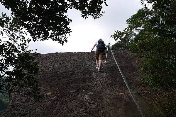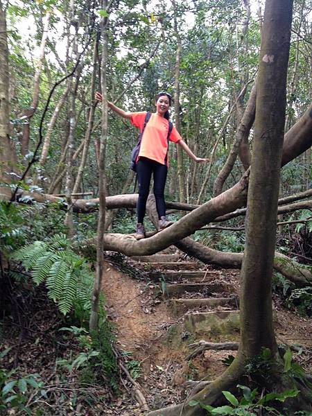 沿路的步道指標不明顯,必須隨時注意跟著登上隊綁的布條前進,不時有些高低落差大的地方需要手腳並用