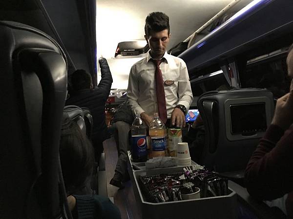 我是訂夜車11:00PM哥樂美Göreme出發,沿途停很多站,07:30AM抵達安塔利亞,車上有服務員倒飲料跟發小點心,是免費提供