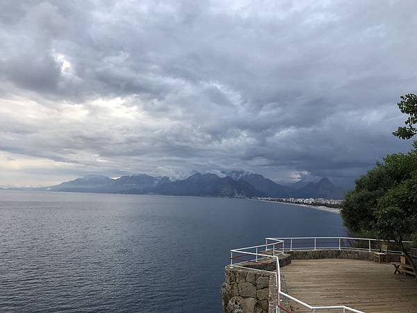 遠方右手邊就是Konyalti沙灘,本來是要搭路面電車去沙灘不過碰到土耳其國父凱末爾Mustafa Kemal Ataturk的誕辰紀念日,是全國性的節日因此當天電車停駛沒辦法去,反倒看到大街小巷窗戶上都了國父照
