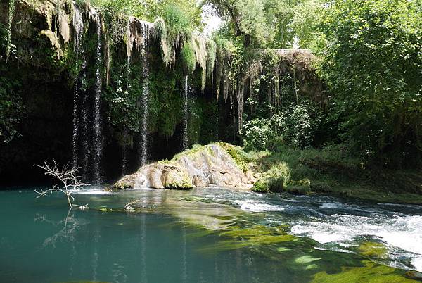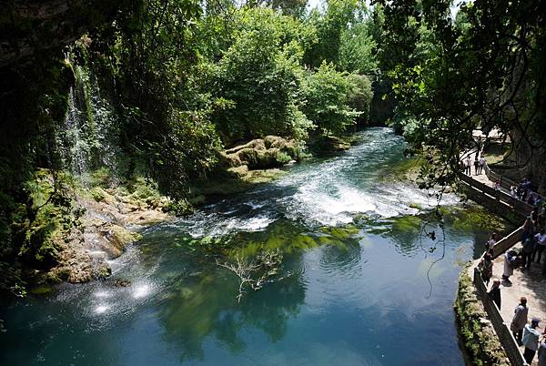 杜登瀑布分為二個區域,一個是上游杜登瀑布區,另一個是下游的瀑布公園,今天來的是上游區,如果你從舊港口搭船則是到達下游區;門票4TL,園區內佈滿植物綠意盎然,溪水碧綠清澈能看到底下長滿水草,步道延伸至瀑布正後方,用不同角度一次滿足瀑布面貌