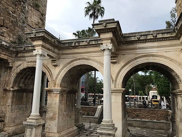 建於西元130年為了紀念羅馬皇帝哈德良的統治而建造,是一座典雅的凱旋門,兩側是塔樓,中間以三座拱門相連,保存近兩千年之久,這個建築建立在比現在的地面還低3公尺的地方,證明安塔利亞舊市區的地下有羅馬城的遺跡