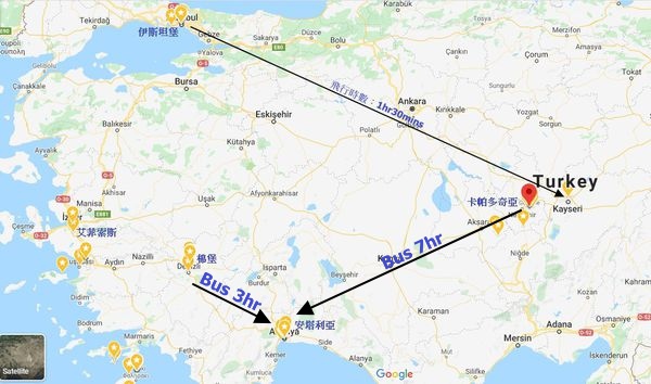 從卡帕多其亞到安塔利亞,巴士車程約7~8小時,如果你是從棉堡過來車程約3小時,車票是到卡帕多奇亞的巴士站詢問,請旅館人員線上訂Metro巴士公司,這買票過程有點曲折