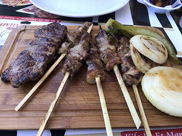 是一家專門的烤肉店,販售各種不同肉類和部位,價錢以秤重計算,點完後結帳現烤,我點的是牛排和羊肉串,大推羊肉串,肉質超嫩、多汁又沒有腥味,有附贈麵包