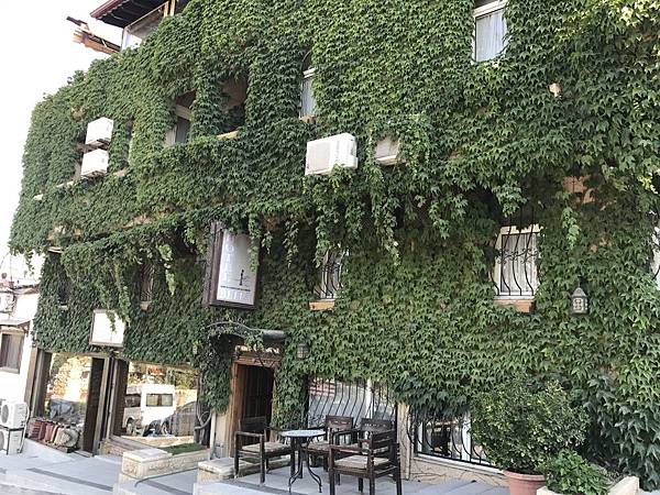整棟建築外觀被藤蔓植物包圍相當漂亮,位置在鬧區對面的小斜坡上,靠近以弗所聖约翰教堂、城堡,優點是免費接送到以弗所遺址入口,還貼心借給我們中文以弗所遺址導覽書;缺點是房間有點小