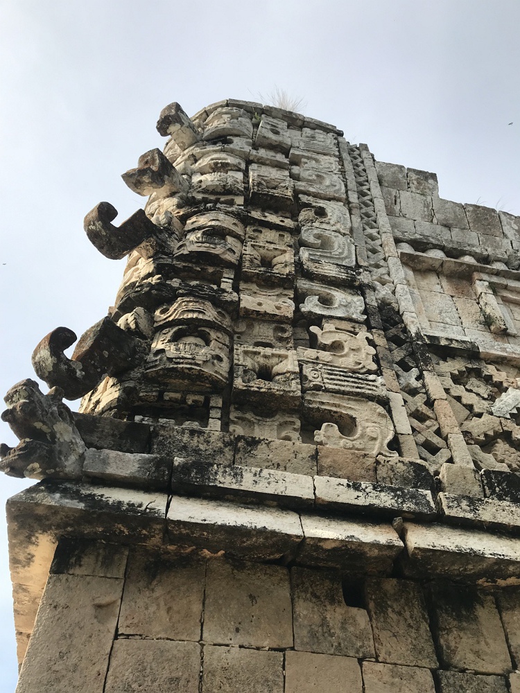 這是烏斯馬爾最好的四方建築之一,內外兩面有精美的雕刻,走進每個口內一看都已是年久失修被鳥兒佔據築巢,仔細看門的上緣接縫處有數十隻的蝙蝠在裡面,如果有興趣可以看我拍攝的影片,有密集恐懼症的勿看