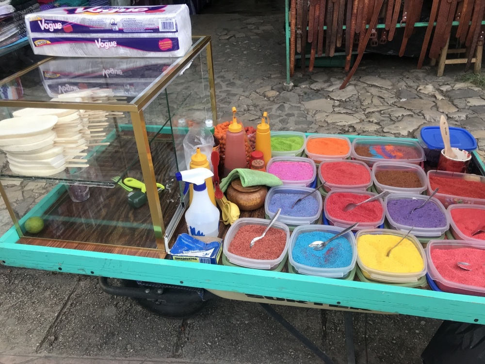 這個是我在路上看到的攤販,那五顏六色的粉吸引我的注意,我一開始以為是賣冰棒,但它又沒有放在冰櫃裡保存,因此我到現在還是不知道是什麼,覺得很特別跟大家分享