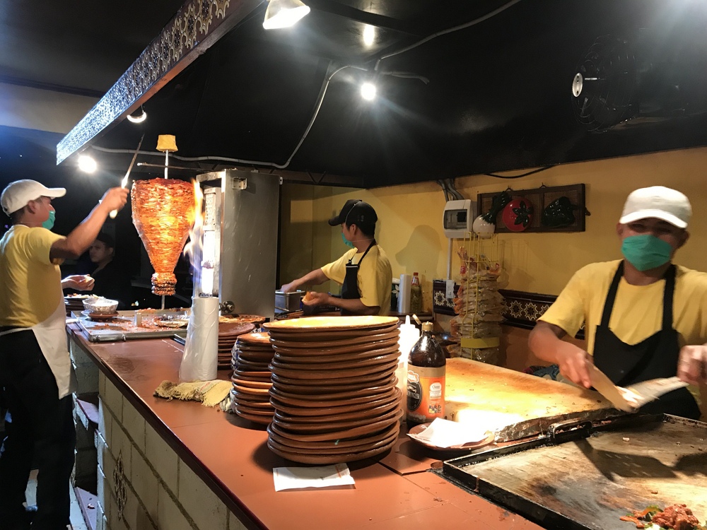 店門口就是一個開放式廚房,可以全程觀看Tacos製作,看看那架上烘烤厚厚的一串肉,就知道生意有多好