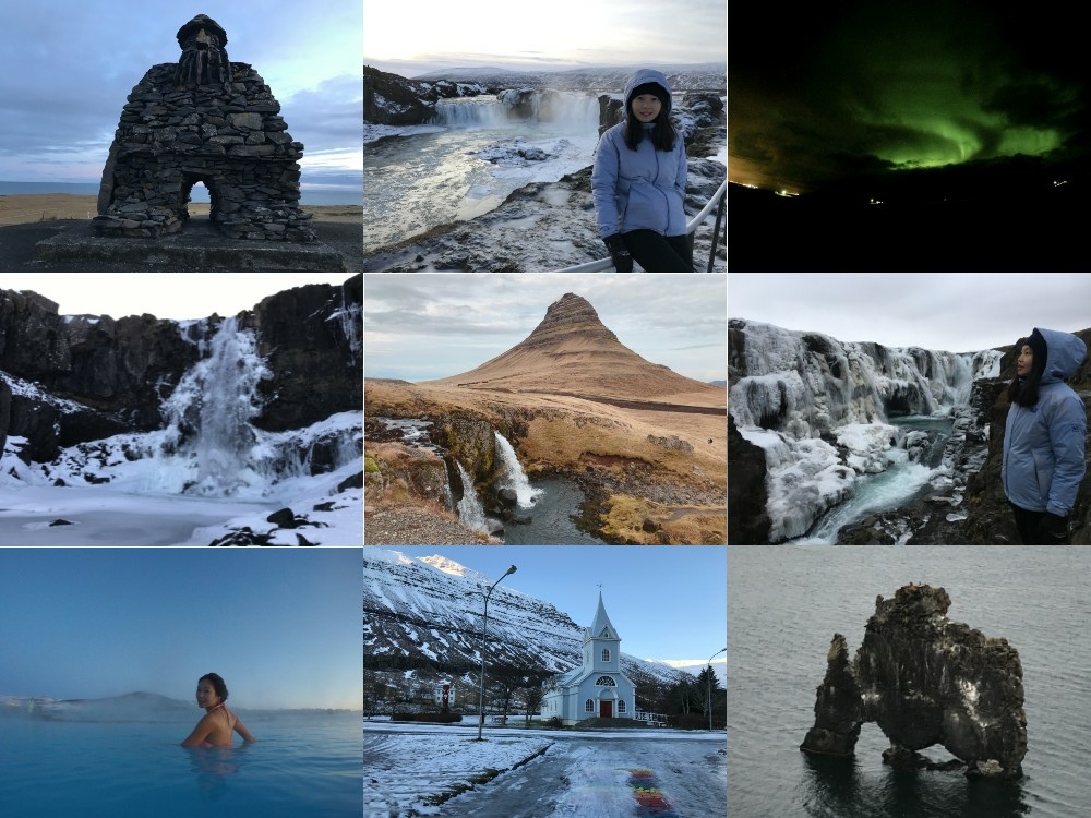 這次環島我印象最深刻的幾個景點,我在這邊和大家分享,黃金瀑布、鑽石沙灘、藍冰洞、巨人峽谷中的Kolufoss瀑布、教堂山,當初自駕到北部超怕碰到暴風雪,然後加上帶著爸媽旅行,我把行程排得很鬆,幸好老天爺很賞臉,順利走完全部行程,也在教堂山和雷克雅維克看到極光!完美~END