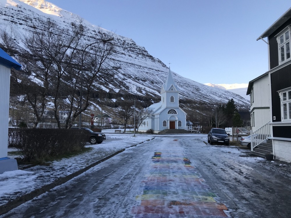 Seyðisfjörður是冰島東部一個不到七百人的小鎮,它坐落在同名峽灣的內角,每周會有一艘來往丹麥和法羅群島的船停泊於這個峽灣,19世紀直到現代,峽灣一直是重要的貿易中心