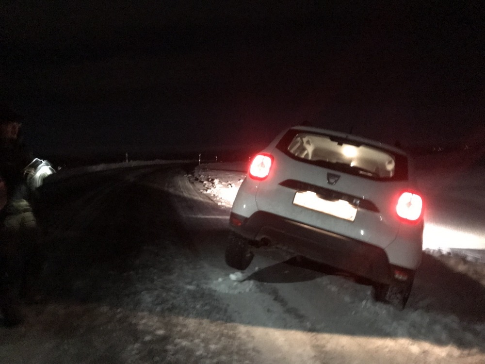 在這93號公路也發生一件糗事,接近凌晨時到山上追極光,道路兩旁已經被雪覆蓋厚厚一層,為了找停車位結果右前輪深陷雪堆中,即使租了四輪驅動依舊無法脫困,十分鐘後第一輛車經過請求協助,但仍然沒有辦法解決,只好叫道路救援