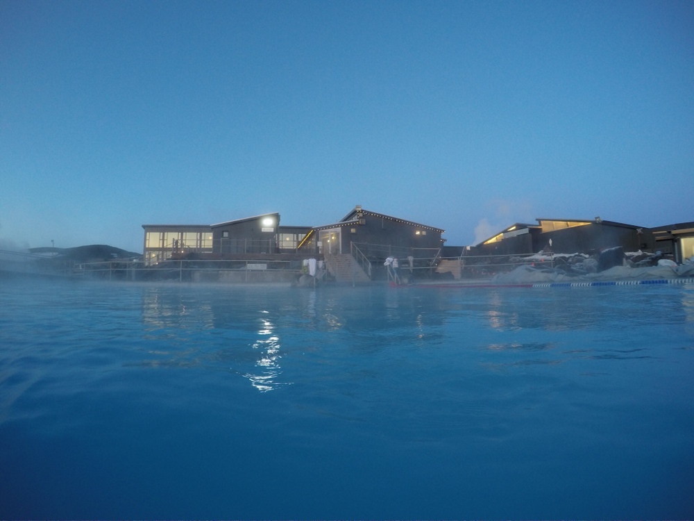 冰島北部的藍湖「米湖溫泉」(Jarðböðin við Mývatn / Mývatn Nature Baths),是天然加熱的人造潟湖,呈現的顏色真的很藍,其水質富含礦物質對健康有益,一度擔心冬天在戶外泡溫泉水溫會不夠,實際上是還好,靠近出水孔處非常熱,離比較遠是會有一點點冷,泡起來相當舒服,唯一缺點是在起來要回到室內那瞬間要一鼓作氣