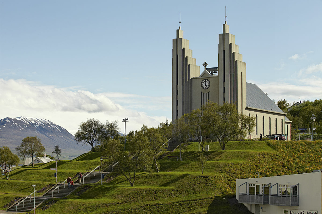 市區的景點:阿庫雷里大教堂 Akureyrarkirkja、阿庫雷里美術館Akureyri Art Museum;冬天是滑雪聖地