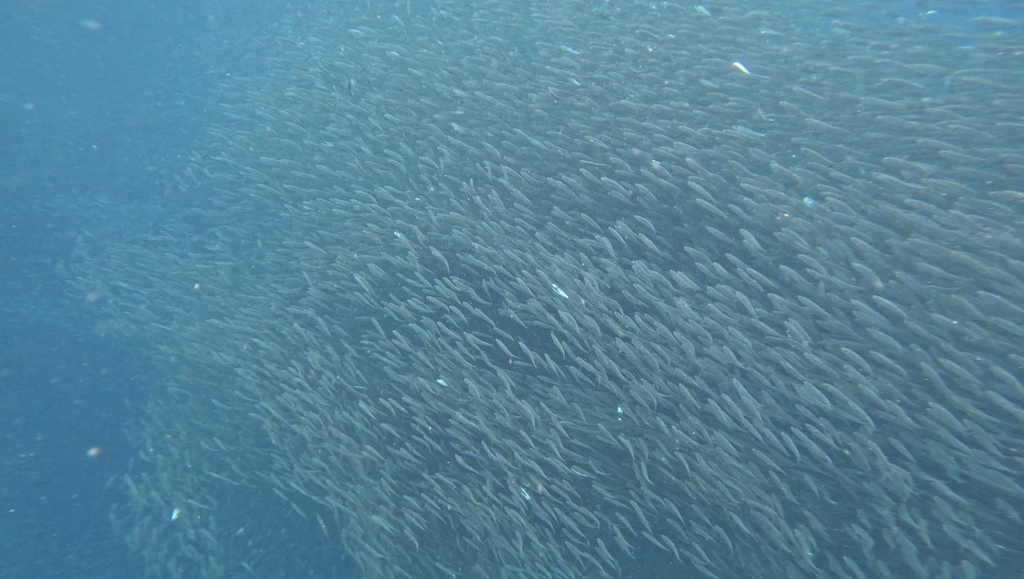 到Panagsama Beach 附近的碼頭花錢找當地人帶或自行前往都可以,沙丁魚距離碼頭約500公尺的深海溝,因為是冷暖流的交匯處,成為沙丁魚最佳的繁衍和聚集的場所,而且沙丁魚風暴是全年都可以看到的 路上會有很多店家問你需不需要導遊帶你去看沙丁魚、海龜、幫忙拍照,浮潛時間約1~1.5小時,由於我們是自己去看,只租了一件救生衣和一雙蛙鞋,以下的價格是我們租浮潛用具店給的報價導遊帶浮潛: 300P /人 (包含蛙鞋、浮潛面鏡、救生衣) 租浮潛道具:每項各100P (面鏡、救生衣、蛙鞋) ,如果你什麼都沒有跟請導遊花費一樣耶!