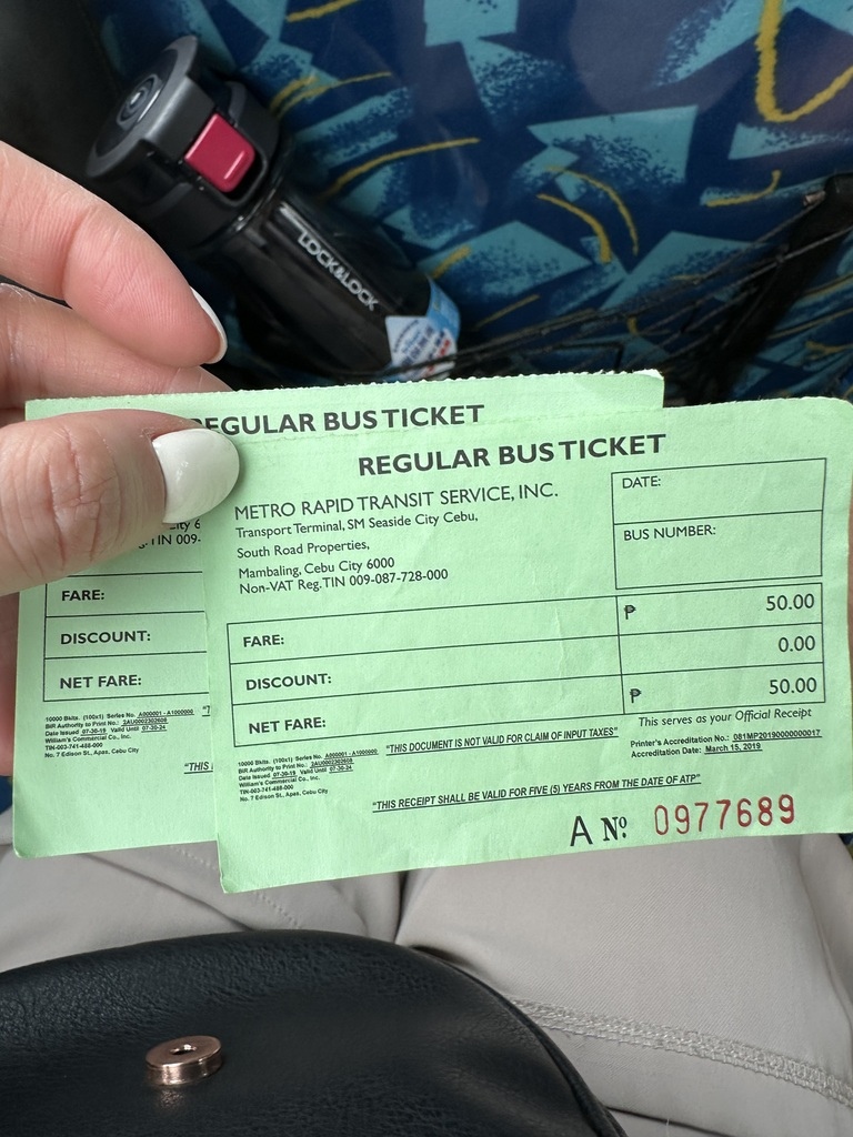 搭乘 MyBus巴士,售票處離出境位置有點遠,我們是出機場後走左邊,先經過電信公司攤位,不遠處看到一輛公車停靠就與司機確認目的地後上車,上車直接付費給司機,機場到SM City Mall 50₱ / 人