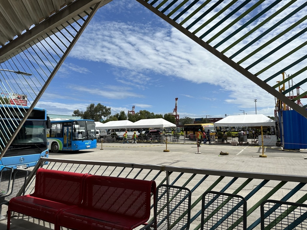 搭乘吉普尼Jeepney前往南巴士站,在SM City Mall找到出口外是 Juan Luna Avenue這條路,搭乘地點 SM PUJ Terminal ,會看到很多吉普尼停在這裡,隨便問一個人哪台是去南巴士站