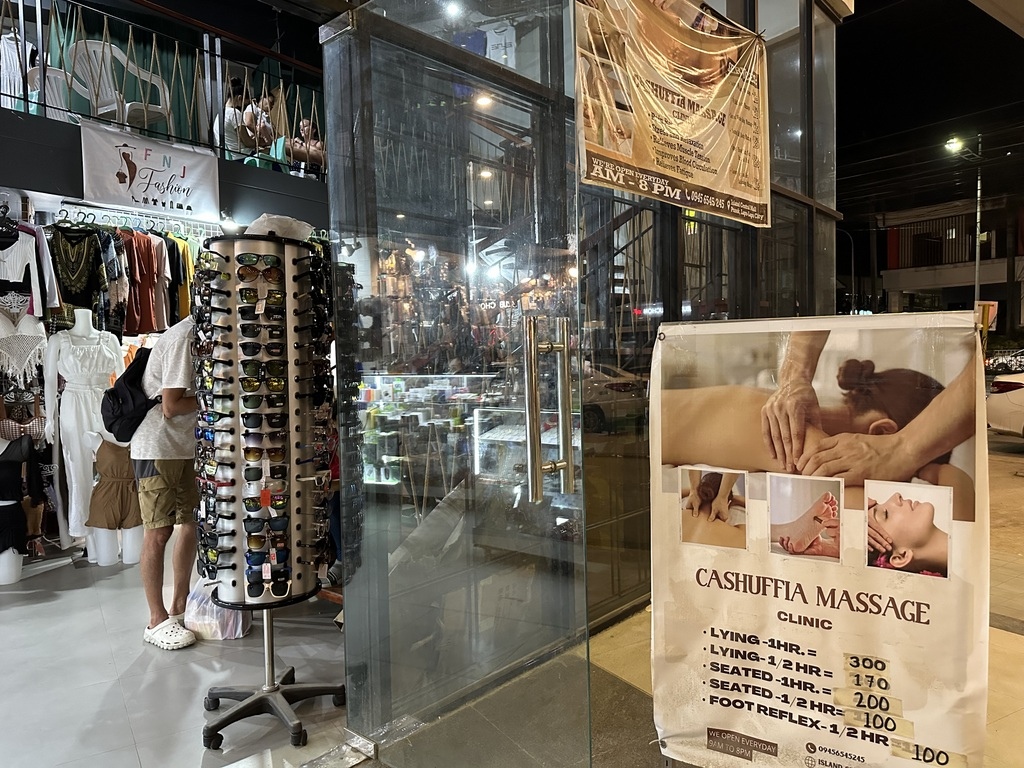 分享按摩資訊和菲律賓伴手禮 ▲ Island Central Mactan 這個Shopping Mall入口處按摩店也太便宜了拉!油壓一小時:300P ,店內只有兩位按摩師要排隊,按摩力道很夠但就是無冷氣吹電風扇有點熱