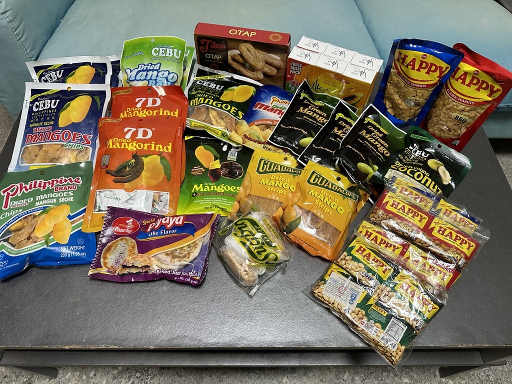 按摩完可以直接進Shopping Mall 的 Robinsons Supermarket Mactan買伴手禮,買這些竟然也花了 $2494P 下面紫色包裝跟他右邊的千層酥餅乾是看別的觀光客買很多,我們也買來嘗鮮,紫色的是餡餅內包裹藍莓,肉桂味有點重,吃起來很甜個人不愛;千層酥餅乾不錯,但包裝不能重壓,他也有出盒裝就是照片OTAP紅色盒子