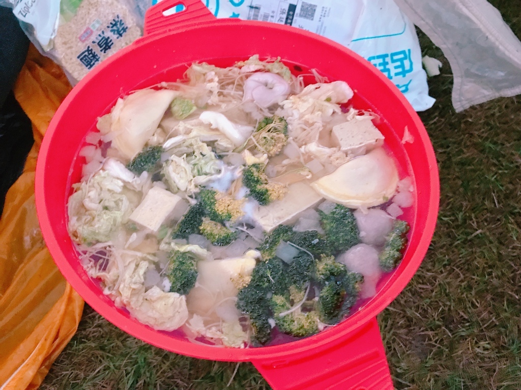 晚餐菜單:青醬義大利麵、火鍋(肉片、海底撈湯底、乾燥高麗菜、燕餃)