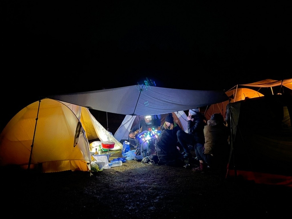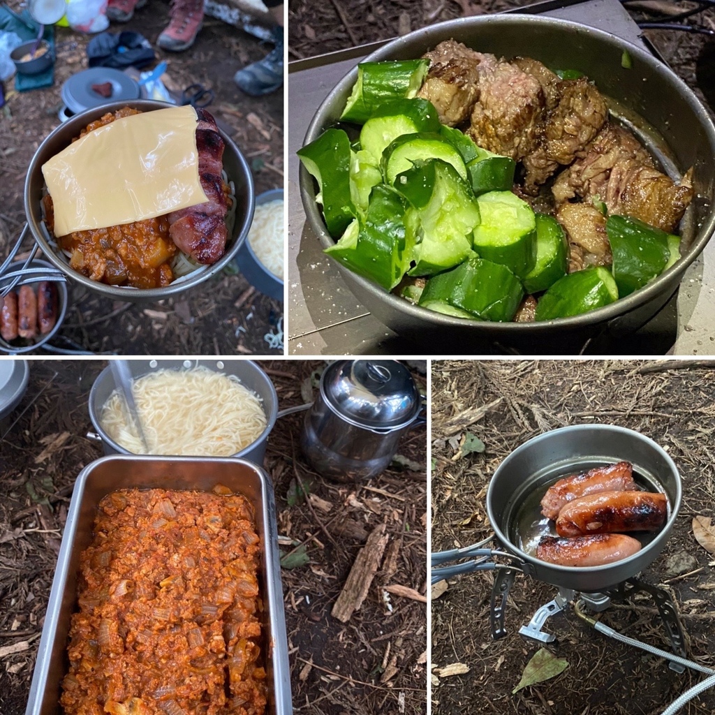 一過風美溪就有一片空地可以紮營,大概可以容納3-5個帳篷沒問題,今天我們包場;風美溪的溪水看起來超少的,可能是最近都沒有下雨的關係,我們有自備3公升的飲用水來煮晚餐