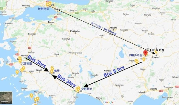 土耳其國土面積大,主要城市可選擇國內航班往返,其他城市間的交通主要靠巴士,我自己在土耳其是只有坐過一次國內線,由伊斯坦堡到Kayseri,其餘都是搭巴士為主