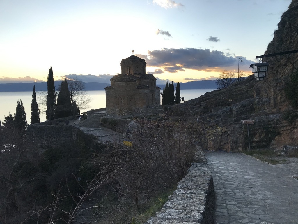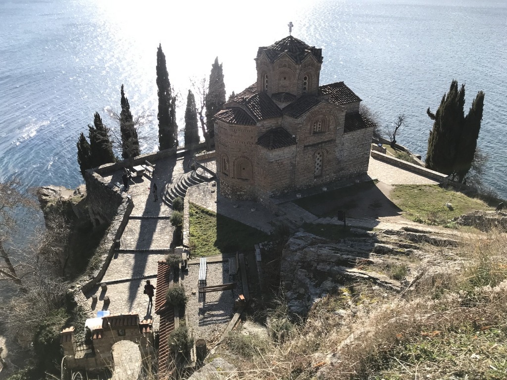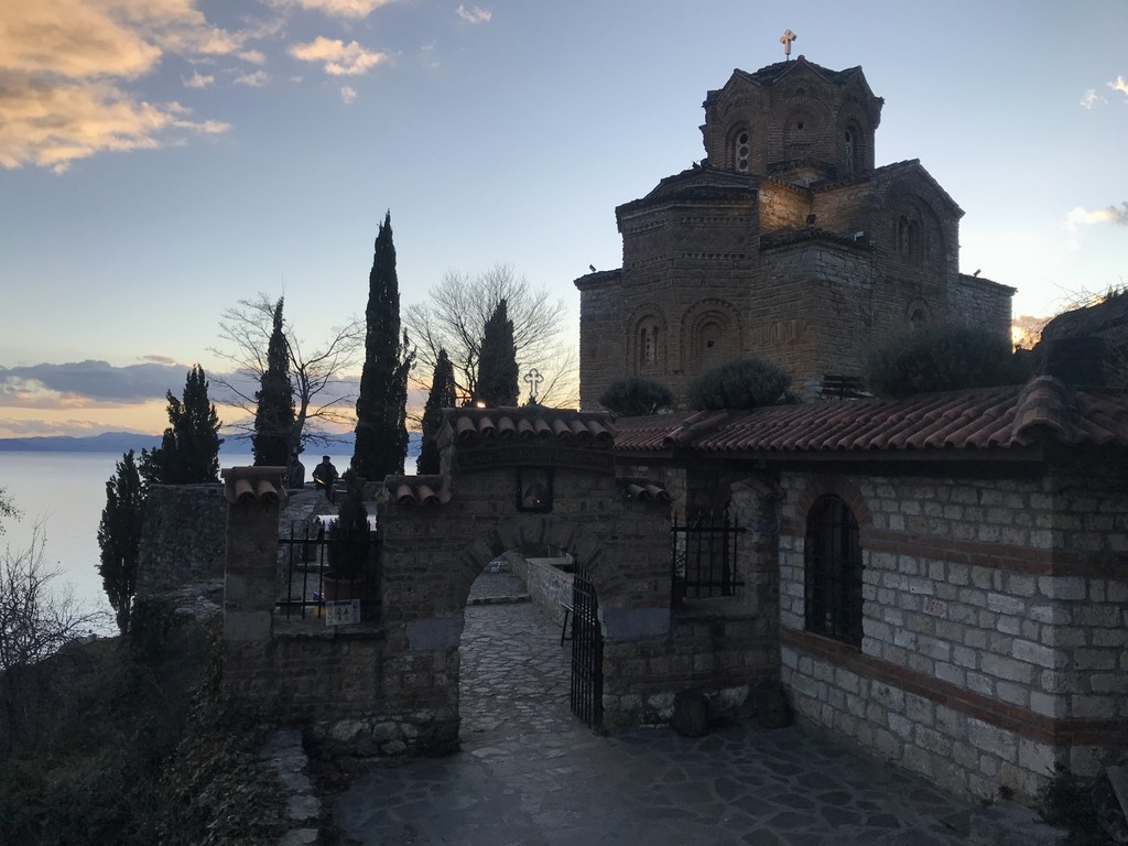 這座東正教教堂就是吸引我前來的動力,教堂高高地佇立在懸崖上,俯瞰奧赫里德湖(Lake Ohrid),美麗景色令人印象深刻,電影「暴雨將至」中經典的一幕就是在此取景,電影上映後讓更多遊客慕名而來
