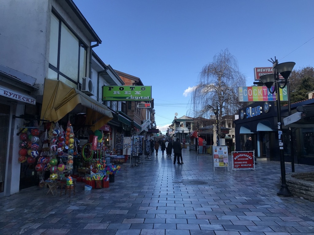 Boulevard Macedonian 街道一直到湖區,是最為熱鬧的商店街,周圍也有不少清真寺、教堂