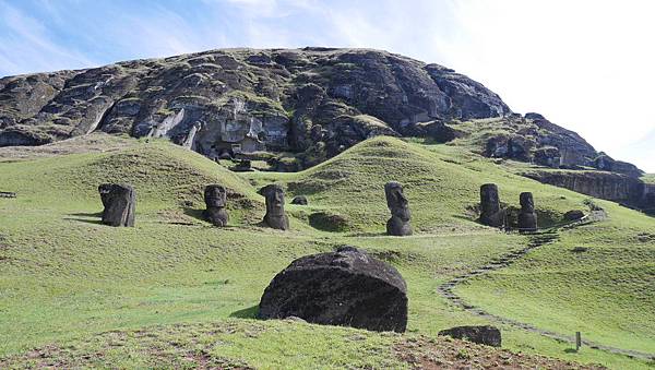 持門票只限進去一次,島上最多摩艾像的地方,散落整個山坡地上,大多處於雕刻的各個階段未完工的摩艾石像,全島絕大多數摩艾石像都是在這裡雕刻的