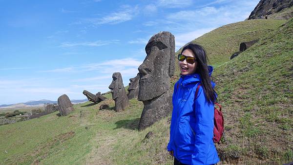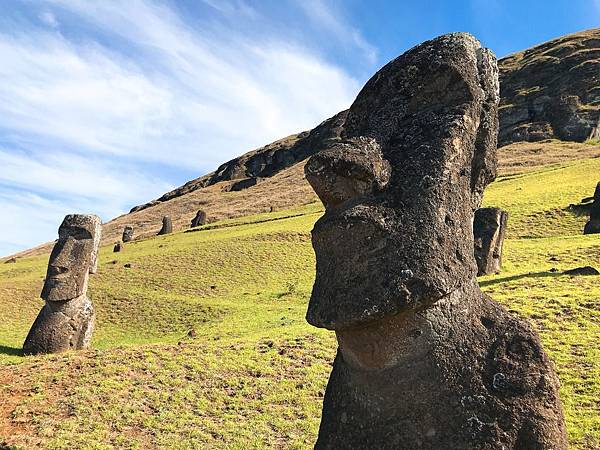 早上來逆光建議下午前往,Rano Raraku早於1986年的夏天,發掘摩艾的整個軀幹,石像都是長臉、長耳、雙眼深凹、高鼻,表情嚴肅