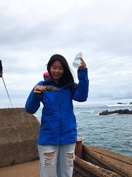 在住宿認識了一對日本夫妻,他們熱情邀我們去港口釣魚,由於釣竿不夠我是使用寶特瓶製成的釣竿,釣到了一條鮮豔的小魚,復活節島因為四周環海,又受秘魯洋流影響所以漁業資源豐富,但從來沒想過會跑來復活節島上釣魚