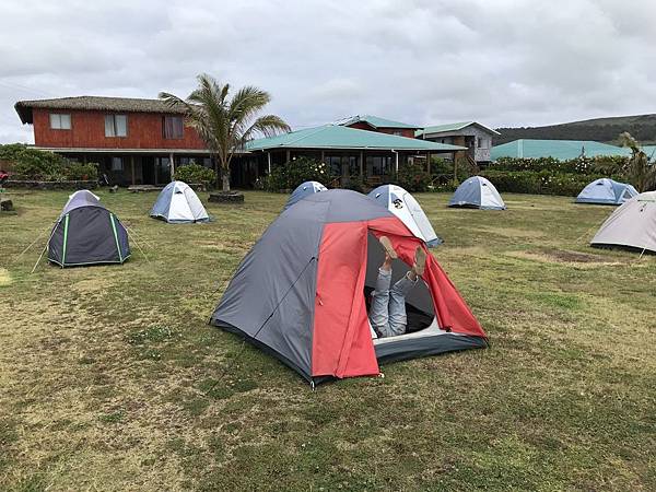 有免費機場接送,使用Booking.com訂四晚帳篷,兩人共USD116,另外也可以選擇現場付費,兩人一晚CLP8000,營地有提供帳篷、睡袋、軟墊,自備以上用品只便宜CLP1000