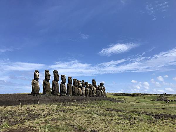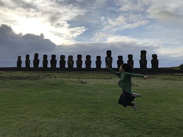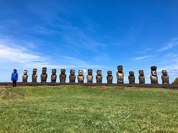 15尊摩艾像一字排開,仔細看每個臉都長得不一樣,考古學家們有多種說法,其中最普遍接受的是這些石像代表從前的部落首領,但至今沒有定論,這裡也是全島最佳賞日出的景點,但很可惜我沒有追到日出,雲太多之外還下起大雨,一度撤退到驗票亭躲雨