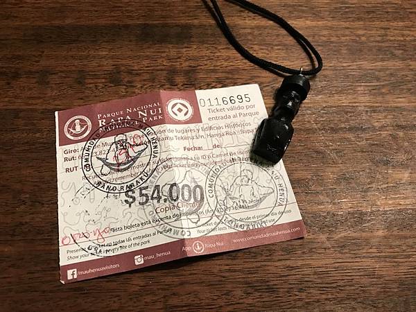 復活節島買國家公園門票,80美金/人、CLP 54000 / 人,機場購票可刷卡或付現,國家公園景點中Rano Raraku和Orongo只限進去一次,其他地方可無限次進出