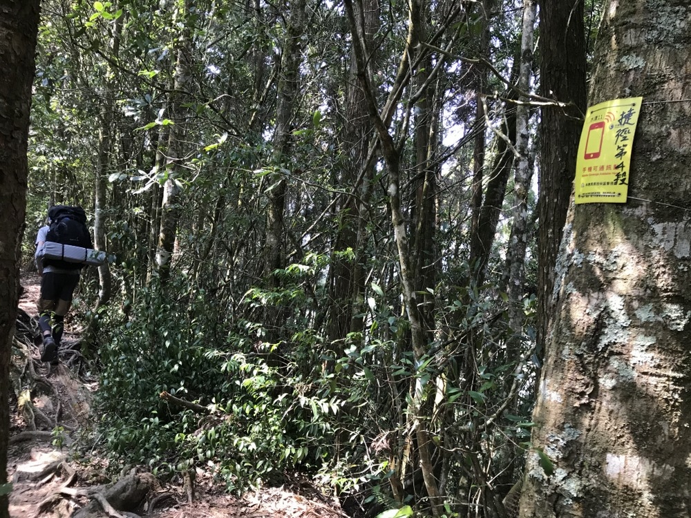 登山口到高台山這段路程是 1.4公里的連續上坡,需要爬 1個小時左右依個人腳程決定,不過我們背著露營裝備,又多花了快一倍的時間才抵達高台山