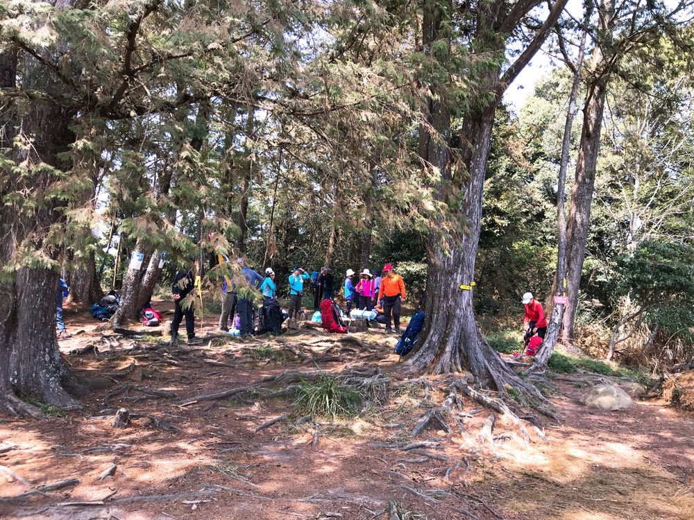 與高台山三角點合照後,再走十分鐘就會到達「柳杉林營地」