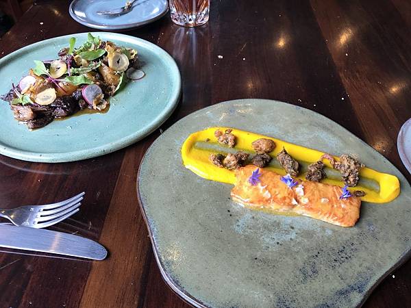 午餐是魚肉,晚餐是雞肉,都有附湯、水果、甜點,份量多、餐點也很符合我們的口味,用餐時間會和其他房客一起在客廳使用,但大家會坐不同桌避免尷尬