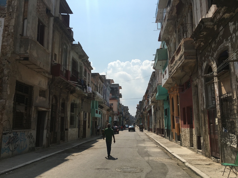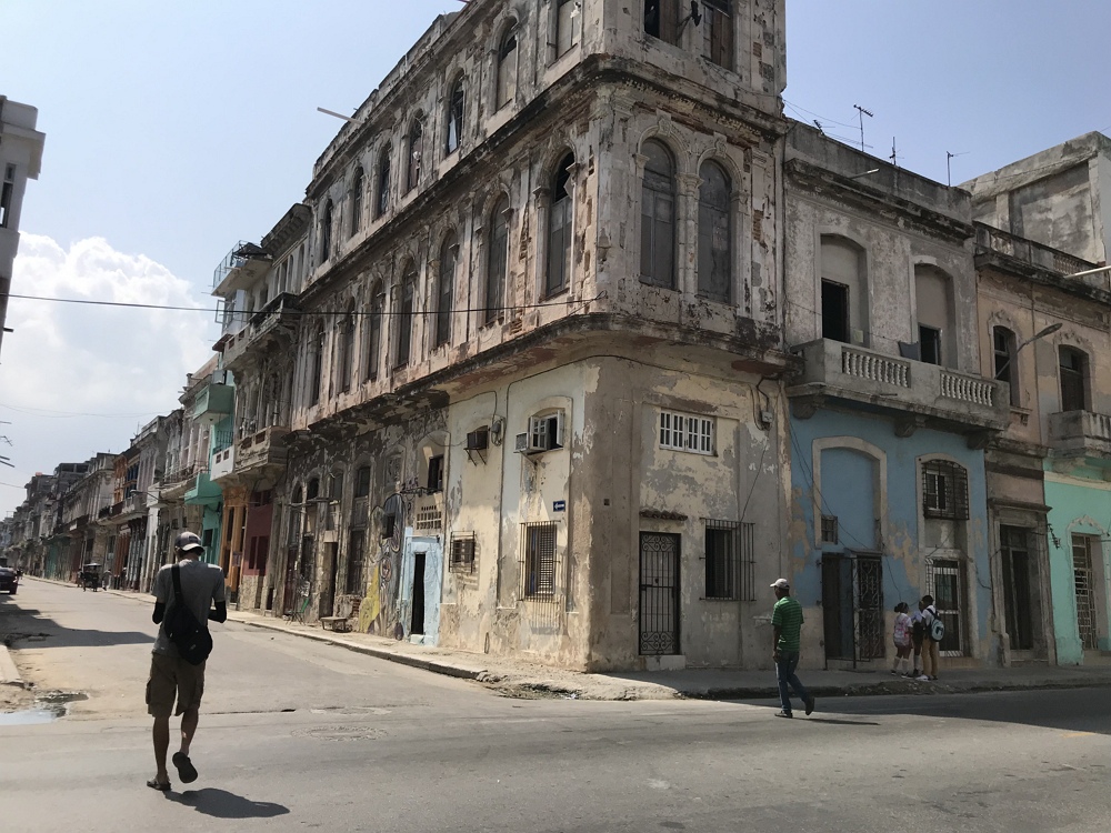 往中央區走能貼近古巴居民的生活,便宜食物、住宿都可在此輕易找到,當你穿梭在狹窄的巷弄中竟是殘破不堪的建築,似乎沒人在意那色澤斑駁的外牆、滿街的垃圾和尿騷味,從中央區到舊城區走路約20分鐘