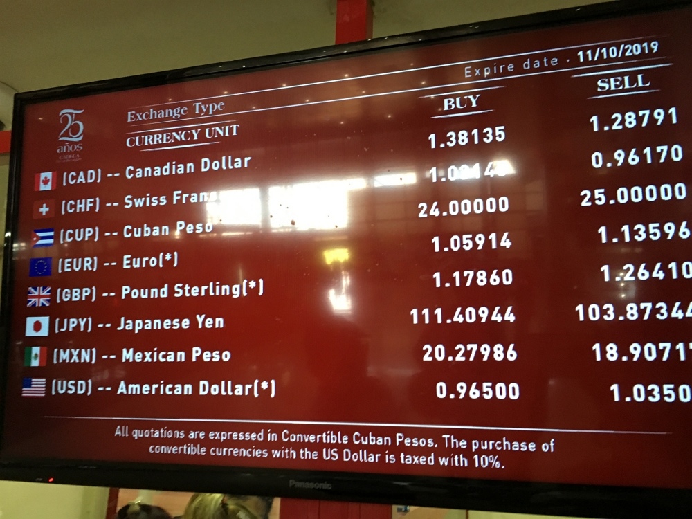 一樣是古巴的逆襲,拿美金換CUC會多被收取10%的手續費,因此去古巴旅遊時最好不要帶美金,建議攜帶歐元或加幣去兌換,匯率也比較好一些