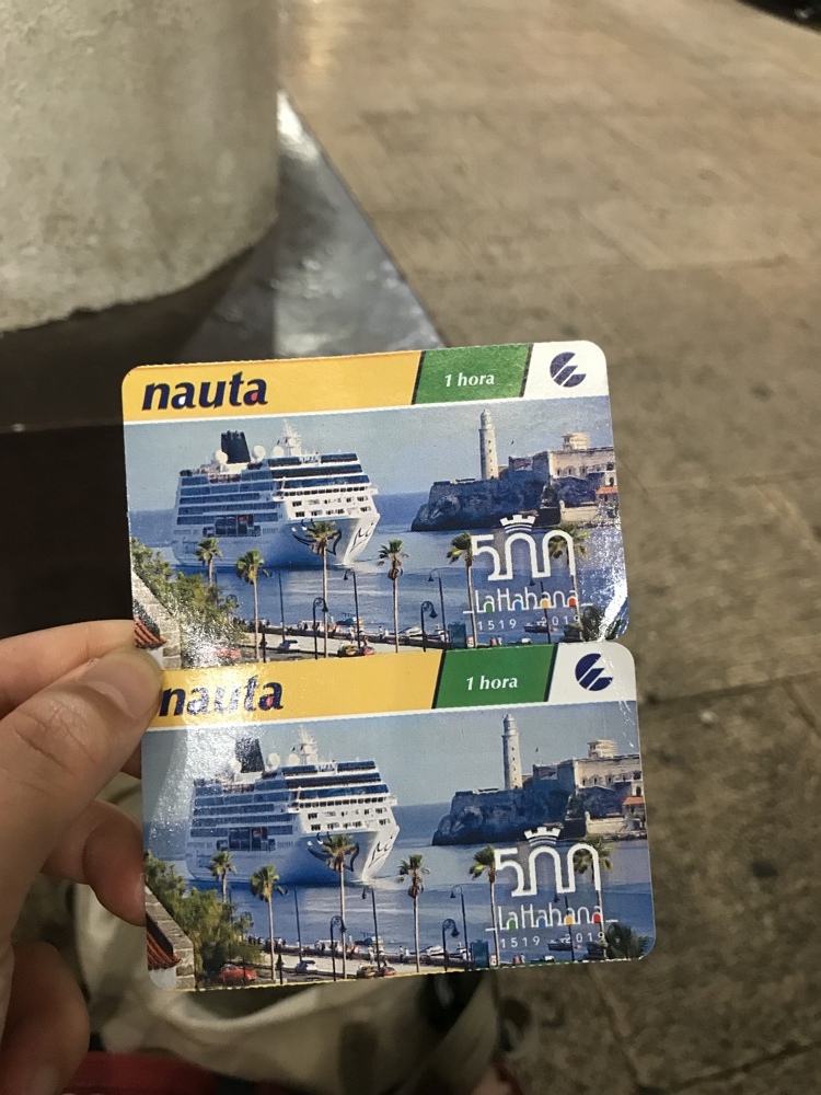 到古巴電信公司ETECSA購買,電信公司外常常都是排隊人潮等著買,有販售1HR網卡1CUC、5HR網卡5CUC,一本護照限購兩張,購買後刮開後面的帳號、密碼
