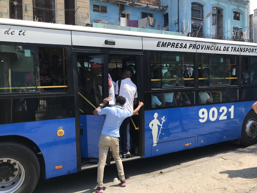 不過讓我蠻意外的是哈瓦那公車,是上述所說的交通工具中最新的,每20分鐘一班仍班班爆滿,收票小弟滿臉無奈還要去推門才關得起來,如上圖所示
